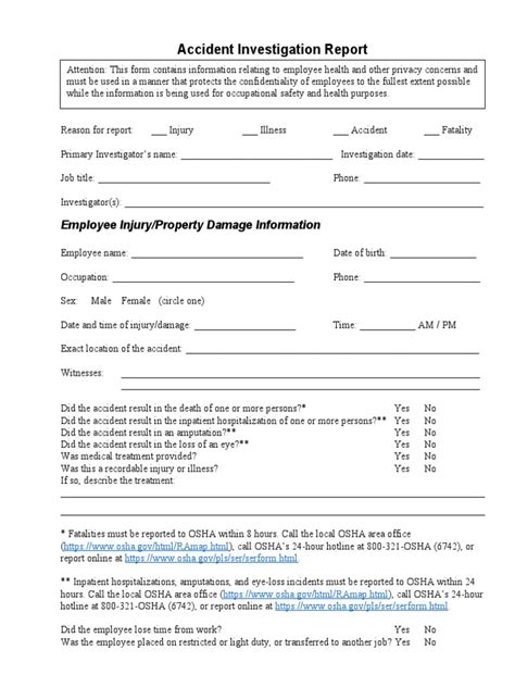 Accident Investigation Report Form Guide