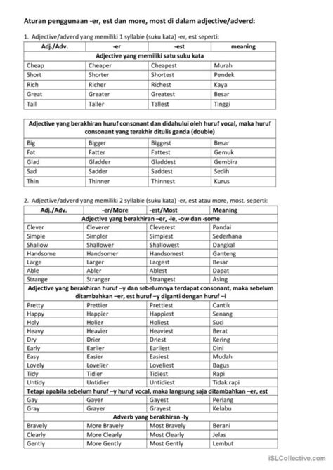 Comparative adjectives are used to compare two things, while superlative adjectives are used to compare three or more things. To form the comparative, add “-er” to the adjective (e.g., taller , smaller ) or use “more” before the adjective (e.g., more beautiful , more intelligent ). To form the superlative, add “-est” to the adjective (e.g., tallest , smallest ) or use “most” before the adjective (e.g., most beautiful , most intelligent ). When choosing between adding “-er/-est” or using “more/most,” consider the length and structure of the adjective. Generally, shorter adjectives take “-er/-est,” while longer adjectives use “more/most.” Be careful not to use both forms together (e.g., avoid saying “more taller”).