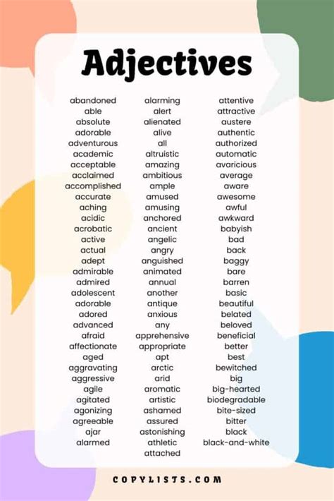 List of Adjective Examples