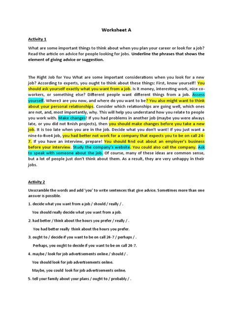 Your Ultimate Guide to Advice and Suggestions Worksheets