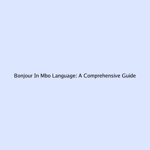 Bonjour In Mbo Language: A Comprehensive Guide