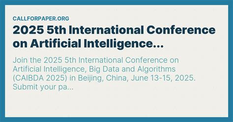 Hey everyone! Get ready to mark your calendars because the 2025 5th International Conference on Artificial Intelligence, Big Data, and Algorithms (CAIBDA) is shaping up to be epic! This is your go-to event if you’re passionate about the ever-evolving worlds of AI, Big Data, and the algorithms that make it all tick. I’m talking about a deep dive into the latest advancements, groundbreaking research, and real-world applications that are changing the game. Whether you’re a seasoned pro, a rising star, or just plain curious, CAIBDA 2025 is the place to be. Prepare to be wowed by insightful presentations, hands-on workshops, and networking opportunities that could shape your future. So, let’s break down what makes CAIBDA so special and why you absolutely shouldn’t miss it.