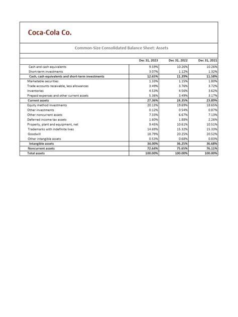 Alright, let’s break down what Coca-Cola owns. When we talk about assets on the Coca-Cola balance sheet, we’re looking at everything from the cash in their accounts to the buildings they operate from. Typically, assets are categorized into current assets and non-current assets. Current assets are those that can be converted into cash within a year, while non-current assets are long-term investments that provide value over a longer period.