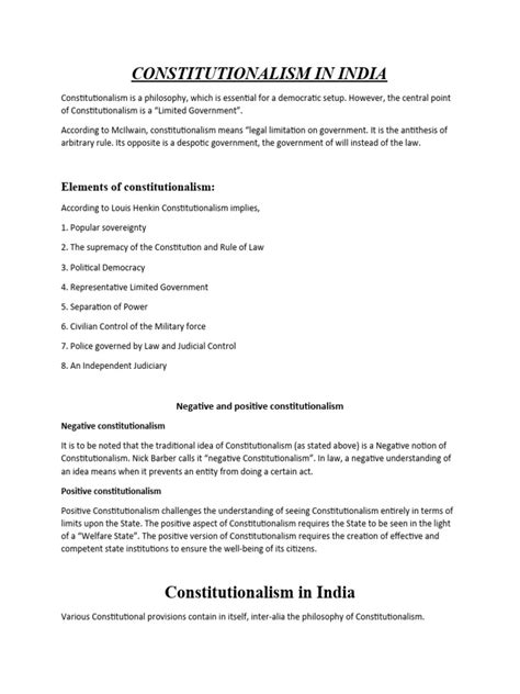 In India, the relationship between the constitution and constitutionalism is particularly significant. The Indian Constitution is one of the most comprehensive and detailed constitutions in the world, guaranteeing a wide range of fundamental rights and establishing a parliamentary system of government. However, the mere existence of this constitution does not automatically guarantee constitutionalism. The success of constitutionalism in India depends on several factors. First and foremost, it requires a strong and independent judiciary capable of upholding the constitution and protecting fundamental rights. The Indian judiciary has played a crucial role in interpreting the constitution and striking down laws that violate its provisions. Second, constitutionalism in India depends on the existence of a vibrant civil society, with active participation from citizens, media, and non-governmental organizations. These actors play a vital role in holding the government accountable and advocating for the protection of constitutional values. Third, constitutionalism in India requires a political culture that respects the rule of law and democratic principles. Politicians and government officials must be committed to upholding the constitution and acting in accordance with its provisions. This requires a willingness to compromise, engage in dialogue, and respect the rights of minorities. It also necessitates a commitment to transparency and accountability, ensuring that government actions are open to public scrutiny. Furthermore, constitutionalism in India faces several challenges, including corruption, poverty, social inequality, and communalism. These challenges can undermine the rule of law and erode public trust in government institutions. Overcoming these challenges requires a concerted effort from all stakeholders, including the government, civil society, and the judiciary. It also requires a commitment to education and awareness, ensuring that citizens understand their rights and responsibilities under the constitution. Ultimately, the success of constitutionalism in India depends on the collective commitment of its people to uphold the principles of justice, equality, and liberty enshrined in the constitution.