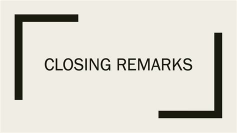 Mastering the art of closing remarks is essential for any effective communicator. By summarizing your key points, reiterating your core message, issuing a clear call to action, and ending with impact, you can leave a lasting impression on your audience and achieve your presentation objectives. So, go forth and craft closings that inspire, motivate, and transform! You got this, guys!