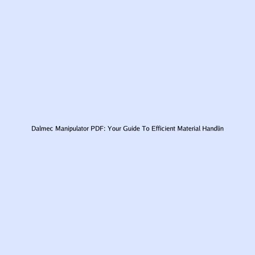 Dalmec Manipulator PDF: Your Guide to Efficient Material Handling