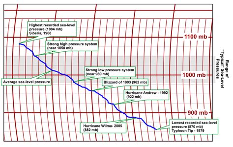 In meteorology, air pressure is typically measured in millibars (mb) or inches of mercury (inHg). Normal atmospheric pressure at sea level is around 1013.25 mb (29.92 inHg). When a hurricane forms, the pressure in the eye can drop significantly, sometimes to below 900 mb (26.5 inHg)! That’s a huge difference, and it’s a key indicator of the storm’s intensity. The lower the pressure, the more intense the hurricane is classified, and the higher the potential for damage.