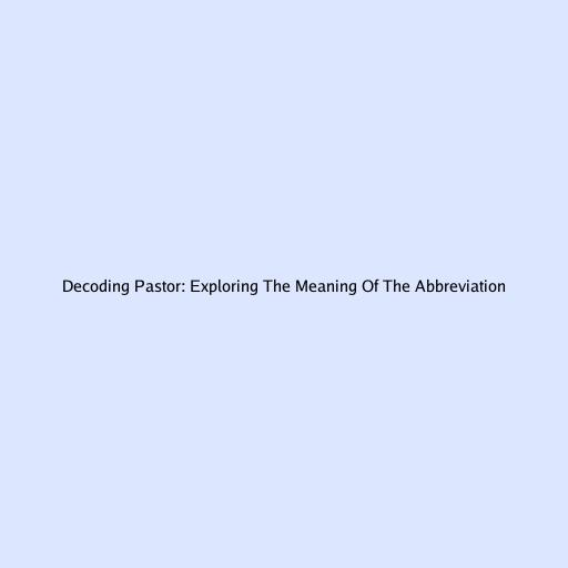 Decoding Pastor: Exploring The Meaning Of The Abbreviation