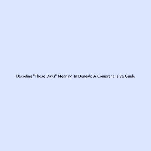 Decoding \“Those Days\” Meaning in Bengali: A Comprehensive Guide