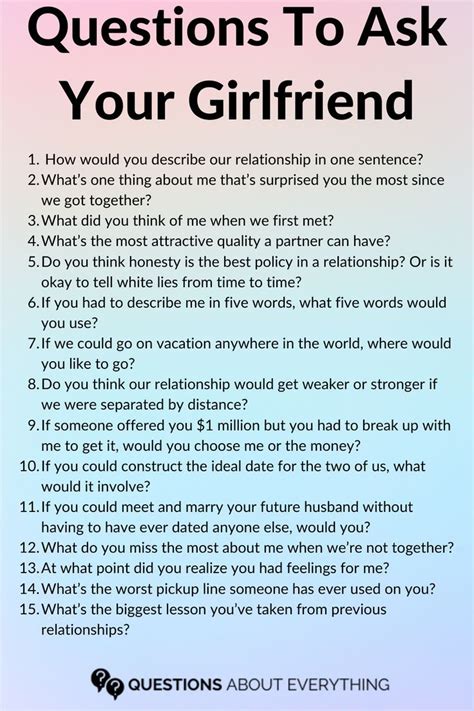 Now, let’s shift gears and talk about the future, guys. This is where things get really exciting! Asking truth questions to ask your gf about her future aspirations is all about building a shared vision and seeing if your dreams align. It’s about painting a picture of where you both see yourselves going, individually and as a couple. These conversations can be incredibly bonding and reassuring. So, what kind of questions should you be asking? Let’s start with her big-picture dreams. “What does your ideal future look like in 5 or 10 years?” This is a broad question, but it can reveal a lot about her values, her career ambitions, her desire for family, travel, or personal growth. It’s your chance to hear her dreams out loud. You can also get more specific. “Are there any major life goals you’re hoping to achieve, like buying a house, traveling the world, or starting a family?” Understanding these milestones helps you see if your timelines and desires match up. It’s also important to talk about career and personal development. “What are your professional goals for the next few years? What skills do you want to develop?” Supporting her career aspirations is a huge part of being a good partner. And when it comes to shared experiences, ask: “What are some adventures or experiences you’d love to have together?” This could be anything from trying a new restaurant to backpacking through Europe. It shows you’re excited about creating memories with her. Don’t shy away from the deeper stuff, either. “What are your thoughts on marriage or long-term commitment?” This is a significant conversation, and it’s crucial to understand her perspective and where she sees you both heading. It’s not about putting pressure on her, but about open dialogue. Also, consider her vision for personal growth. “How do you see yourself evolving as a person in the future?” This shows you’re interested in her continuous development and self-improvement. The key here is to approach these future-oriented discussions with optimism and collaboration. Listen intently to her hopes and dreams, and share your own. See where your paths might intersect and where you can support each other’s individual journeys. Building a future together is one of the most rewarding aspects of a relationship, and these questions are your roadmap to getting there. It’s about creating a shared vision that excites you both and makes you eager to step into what’s next, side-by-side.