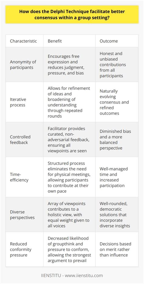 Like any tool, the Delphi consensus method comes with its own set of pros and cons. Let’s chat about the good stuff first. One of the biggest advantages is its ability to gather diverse opinions from geographically dispersed experts without the need for costly and time-consuming face-to-face meetings. This flexibility is a huge win, especially in today’s globalized world. The anonymity factor, as we’ve stressed, is another massive plus. It minimizes the impact of dominant personalities, groupthink, and social pressures, leading to potentially more honest and unbiased input. This structured process also ensures that all feedback is carefully considered and summarized, providing a clear overview of expert perspectives and the reasoning behind them. It’s particularly effective for forecasting and policy-making where predicting future trends or establishing best practices is essential. The iterative nature allows for learning and refinement, meaning the final consensus is likely to be well-thought-out and robust.