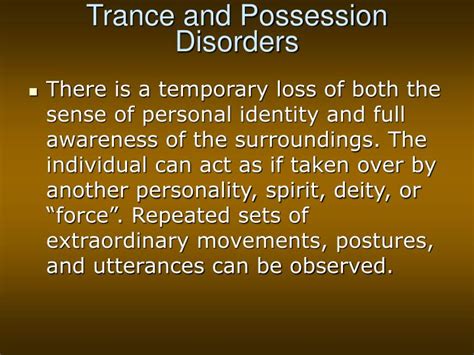 Alright, let’s kick things off by really nailing down what Possession Trance Disorder (PTD) is all about . Basically, PTD is categorized under dissociative disorders in the Diagnostic and Statistical Manual of Mental Disorders, Fifth Edition (DSM-5), which is like the go-to guide for mental health professionals. What makes PTD stand out is this pretty intense experience where an individual’s normal sense of identity gets temporarily replaced by an external entity. Imagine feeling like you’re no longer yourself, but rather some other force or spirit has taken the reins of your body and mind. This isn’t a deliberate act; it’s typically involuntary and can be incredibly unsettling for the person experiencing it. The trance aspect refers to an altered state of consciousness, where the person might seem disconnected from their surroundings, have reduced awareness, or even respond differently than usual. Think of it as a momentary shift in their entire being, often accompanied by characteristic physical behaviors, vocalizations, or expressions that might seem foreign to their typical self. The possession element comes in when they genuinely believe, or their behavior suggests, that an external spirit, entity, or power has taken control. This can manifest in a myriad of ways, from speaking in a different voice to exhibiting behaviors completely out of character. Crucially, for it to be considered a disorder , these experiences must cause significant distress to the individual or impair their functioning in social, occupational, or other important areas of life. This is the key differentiator, guys. Many cultures around the world have spiritual or religious practices that involve trance states or even what they might describe as possession, but these are often voluntary, ritualized, and integrated into their community in a positive way. Possession Trance Disorder , on the other hand, is when these experiences are unwanted, distressing, and disrupt normal life, leading to emotional pain and difficulties. It’s a complex interplay of psychological, cultural, and sometimes spiritual factors that needs careful and sensitive understanding.