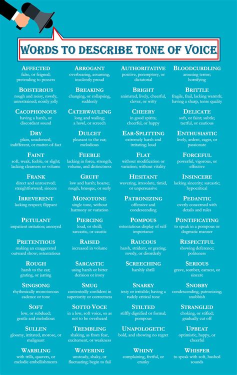These literary devices can help create a vivid and memorable impression of a character’s voice. For instance, describing a voice as “like nails on a chalkboard” immediately conveys its unpleasantness.