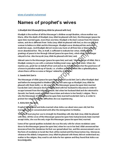 Alright, let’s meet the main players! Prophet Muhammad had multiple wives throughout his life, each with their own unique story and contributions. Here’s a brief overview of some of the most prominent ones: