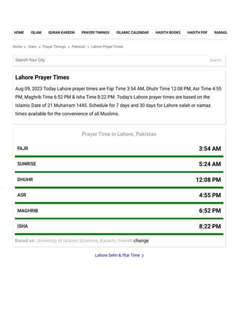 For getting accurate Fajr prayer times in Lahore , some apps and websites stand out. IslamicFinder is a popular choice, providing prayer times based on your location. It also features a Qibla finder and other useful tools. Muslim Pro is another well-known app with accurate prayer times, Quran recitations, and more. PrayerTimes.com is an excellent website that offers precise prayer times for Lahore and other cities. They also provide detailed information on the calculation methods they use. Local mosques in Lahore often have websites or social media pages where they publish prayer times. Checking these sources will help you stay updated. When using any app or website, make sure that the location settings are accurate. This ensures that the prayer times are specific to your exact location in Lahore. These resources are designed to make it easy to follow the prayer schedule. Most prayer apps offer notifications. These will remind you when it’s time for prayer. Always double-check prayer times from several sources. This is to ensure that you have the most up-to-date information. These apps and websites will surely help you to maintain a consistent prayer schedule. They offer a user-friendly way to stay connected to your faith.
