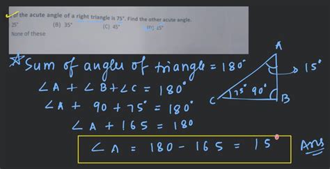 So, let’s assume we have a right-angled triangle. We know one angle is 90°. We are given that another angle (let’s call it Angle A) is 50°. We need to find the third angle (let’s call it Angle B), which we know must also be acute. Using our trusty 180-degree rule: Angle 1 + Angle 2 + Angle 3 = 180° .