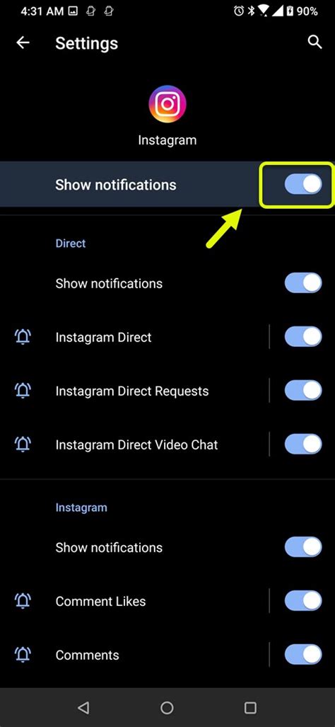 • Allow Notifications: Make sure the “Allow Notifications” toggle is turned on. If it’s off, you won’t receive any notifications from Instagram.