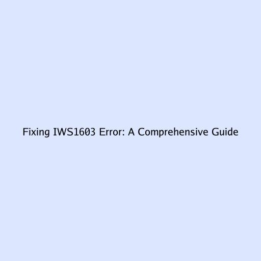 Fixing IWS1603 Error: A Comprehensive Guide
