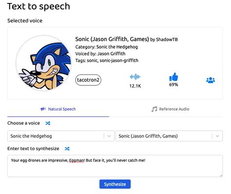 FakeYou is another popular choice for voice cloning and text-to-speech. It has a dedicated community of users who create and share voice models, including several Sonic the Hedgehog voices.