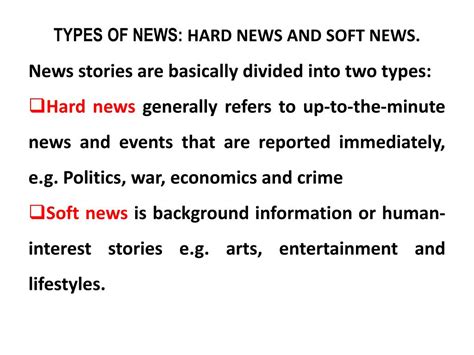 • Factual Basis: Hard news relies on verifiable facts and credible sources . Journalists conduct thorough research, gather evidence, and interview experts to ensure the accuracy of their reporting. They cite their sources, providing readers with the information they need to verify the claims made in the story. This commitment to factual accuracy is what distinguishes hard news from opinion pieces or sensationalized stories. Journalists adhere to strict ethical guidelines to ensure that their reporting is based on reliable information and that they are not spreading misinformation or propaganda. The pursuit of truth is paramount in hard news reporting.