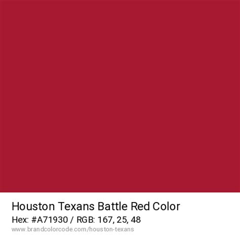 When we talk about the Houston Texans red color code , we need to clarify what the official Battle Red is and how you can use it. The color code is usually represented in several ways. The most common is the hex code , which is used in web design. There are also RGB values , which are used in print design and on your computer, and CMYK values used for printing materials such as posters, flyers, or anything else you might need to print out. The primary color, Battle Red , is a bold and dynamic color that represents the team’s energy and passion. It’s the most prominent color of the team’s brand, used in the jerseys, helmets, and other team merchandise. It’s the color that sets the tone for the Texans , making them stand out in the NFL . Understanding the exact specifications of the Battle Red color is important for many reasons. If you plan to design your fan cave, you’ll want to use the right shades. You may want to personalize items, such as mugs, t-shirts, or even a vehicle. Or maybe you’re just looking for the right paint color for your walls. Whatever the reason, having access to the official color codes is useful. Let’s start with the official Battle Red color code.