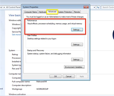 Once the System Properties window is open, you’ll see several tabs at the top. You want to click on the ‘Advanced’ tab. Under the ‘Performance’ section, you’ll find a button that says ‘Settings…’ . Click on that. This will open the Performance Options window.