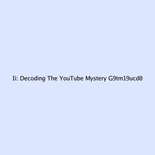 Ii: Decoding The YouTube Mystery G9tm19ucd0