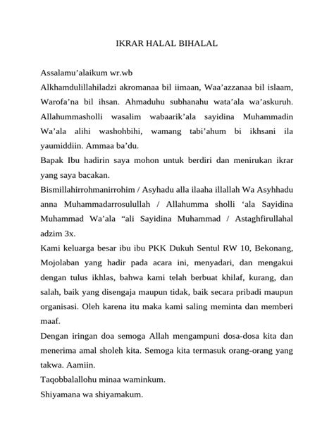 In short, the ikrar is a vital component of Halal Bihalal , representing a sincere and public commitment to seeking forgiveness and fostering reconciliation. It embodies the values of humility, empathy, and mutual respect, and plays a crucial role in maintaining harmony and strengthening social bonds within the community. So, when you participate in the ikrar , remember that you are not just saying words; you are making a heartfelt pledge to uphold the spirit of Halal Bihalal .