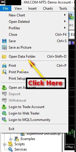 Now, copy the .mq5 file of your trading robot to the appropriate folder in the MT5 data directory. To do this, open MT5, go to “File,” then “Open Data Folder.” Navigate to MQL5/Experts and paste your robot file there. Restart MT5 to ensure the robot is recognized.