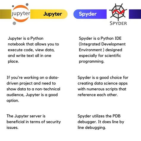 Hey there, Pythonistas! Ever found yourselves scratching your heads trying to pick between Jupyter Notebook and Spyder IDE for your latest project? You’re definitely not alone, guys. These two fantastic tools are absolute powerhouses in the Python development world, especially for data science and scientific computing , but they’re designed with fundamentally different philosophies. Understanding these differences isn’t just about technical specifications; it’s about finding the right companion that truly fits your workflow, project type, and even your personal coding style. Whether you’re a seasoned data scientist, a budding machine learning engineer, or just someone dabbling in Python for fun, knowing the ins and outs of both Jupyter Notebook and Spyder IDE can significantly boost your productivity and enjoyment. This article is all about giving you the lowdown, helping you make an informed choice, and perhaps even convincing you that there’s a place for both in your toolkit. We’re going to dive deep into what makes each of them tick, explore their unique strengths, and highlight scenarios where one truly shines over the other. So, grab your favorite beverage, and let’s unravel the great debate: Jupyter Notebook vs. Spyder IDE !