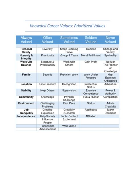 Hey everyone! Today, we’re diving deep into something super important for your career journey: Knowdell Career Values . You know, those core beliefs that truly drive you and make you feel fulfilled in your work? Understanding these values isn’t just a nice-to-have; it’s a must-have for building a career that genuinely makes you happy and motivated. We’re going to break down what Knowdell Career Values are all about, why they matter so darn much, and how you can uncover your own unique set. So, grab a coffee, get comfy, and let’s explore how aligning your career with what you truly value can transform your professional life. It’s all about finding that sweet spot where your passion meets your profession, leading to a career that feels less like a chore and more like a calling.