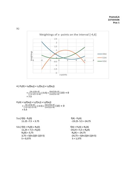 • L2(x) : L2(x) = ((x - 1) * (x - 3)) / ((5 - 1) * (5 - 3)) L2(x) = ((x - 1) * (x - 3)) / ((4) * (2)) L2(x) = (x^2 - 4x + 3) / 8