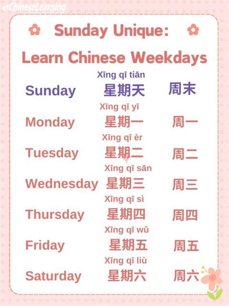 And for Sunday, it’s a little different. Sunday isn’t “星期七” (xīngqī qī). Instead, it uses a different word: