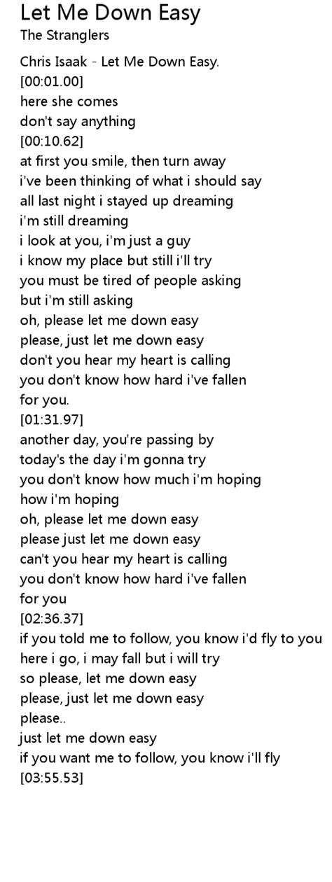 In conclusion, the lyrics of “Let Me Down Easy” offer a profound exploration of human vulnerability, the complexities of relationships, and the deep-seated fear of pain. The simple, yet potent, phrase acts as a powerful anchor for a narrative steeped in emotion. Whether you’re listening to it once or engaging with a 1-hour loop , the song’s ability to connect with listeners on a visceral level is undeniable. The themes of trust, betrayal, and the desperate hope for a gentle parting resonate universally. The lyrics themselves are a masterclass in conveying deep emotion with economy and impact. They speak to the part of us that longs for kindness, even in the harshest of circumstances. The 1-hour loop format, while perhaps unconventional, offers a unique and intense way to experience the song’s message, mirroring the obsessive nature of heartbreak and allowing for a deeper emotional immersion. It’s a testament to the song’s power that it continues to capture hearts and minds, providing a soundtrack for those navigating the often-turbulent waters of love and loss. It reminds us that even when we anticipate the fall, we still hope for a soft landing. This enduring appeal lies in its raw honesty and its ability to articulate the unspoken fears and desires that accompany deep emotional connection. It’s a song that stays with you, prompting reflection and offering a sense of shared understanding. The narrative, amplified by the extended listening, becomes a companion for those grappling with similar emotional landscapes. It’s a beautiful, albeit somber, reminder of our shared humanity and the delicate dance of relationships.