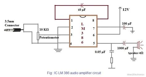 4. Output Stage : Connect Pin 4 (OUT) to your speaker through another coupling capacitor (e.g., 220μF to 1000μF). This capacitor blocks any DC voltage from the output, protecting the speaker. The speaker should be rated appropriately for the output power of the LM383 (e.g., 4Ω or 8Ω).