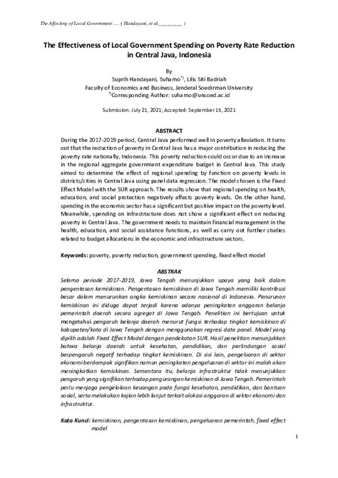 In conclusion, the effectiveness of local government spending on poverty rate reduction in Central Java is a complex issue with significant implications for the well-being of its citizens. While strategic investments in sectors such as education, healthcare, and infrastructure have the potential to significantly reduce poverty, several challenges and obstacles can hinder progress. These include corruption, lack of capacity, inadequate coordination, political instability, and external shocks. To overcome these challenges and maximize the impact of public spending, it is essential to strengthen governance, build capacity, improve coordination, engage local communities, and continuously monitor and evaluate program outcomes. By implementing these recommendations, local governments in Central Java can create a more conducive environment for poverty reduction and build a more equitable and prosperous society for all. Ultimately, the goal is to ensure that resources are used efficiently and effectively to improve the lives of the poor and create opportunities for them to thrive. The journey towards poverty reduction is ongoing, and it requires a concerted effort from all stakeholders, including government, civil society, and the private sector. Together, we can make a lasting difference in the fight against poverty in Central Java and beyond. Remember, guys, every little bit counts!