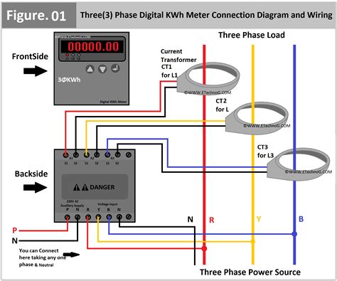 3. Voltage Connections: The meter needs to sense the voltage on each phase. This typically involves connecting voltage leads from the meter to the appropriate phase and neutral (or between phases, depending on the meter’s configuration). Ensure these connections are made to the line side (source side) of any main breakers or fuses for accurate power measurement.