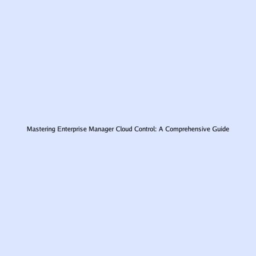 Mastering Enterprise Manager Cloud Control: A Comprehensive Guide