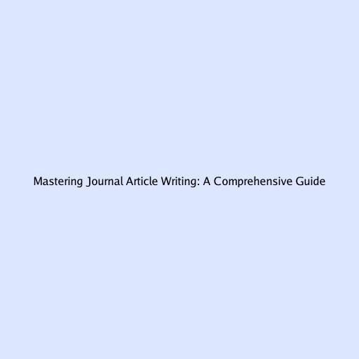 Mastering Journal Article Writing: A Comprehensive Guide