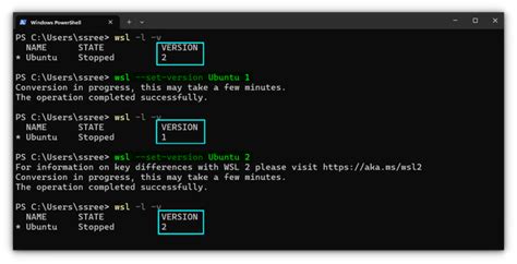 Once you press Enter, WSL will begin the conversion process. This can take a few minutes, depending on the size of your distribution and the speed of your system. You might see a message like