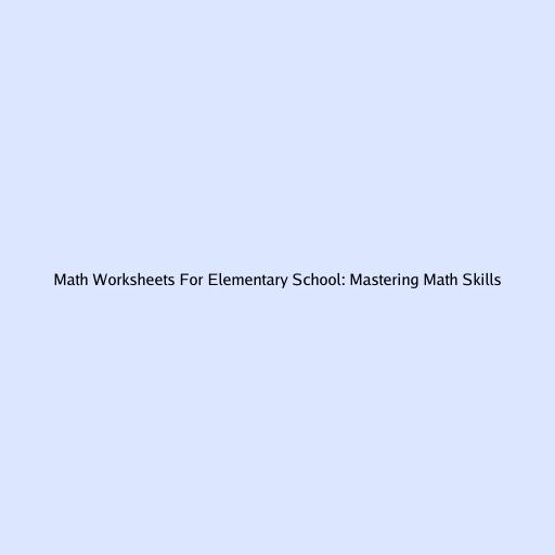 Math Worksheets For Elementary School: Mastering Math Skills
