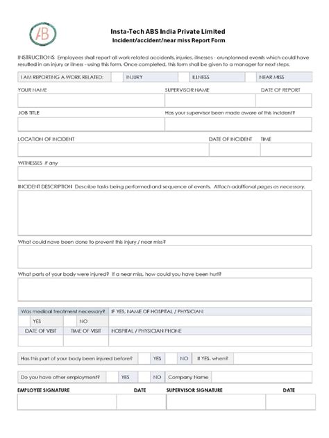 Now that we know why it’s so important, let’s break down what actually goes into a good near miss accident report form . You want this thing to be comprehensive but also easy to fill out, right? Nobody wants to spend an hour on a form. So, what are the essential bits and pieces? First off, you’ll need basic incident details . This includes the date, time, and exact location of the near miss. Be specific here, guys! “Near the big machine” isn’t as helpful as “In the north corner of the assembly line, next to the conveyor belt.” Next, we need a description of the event . This is where you explain what happened . What were you doing? What went wrong? What could have happened? Be clear and factual. Avoid opinions or blame; just state the facts. For instance, instead of “Bob was careless,” you’d say “The forklift operator nearly struck a pedestrian who was walking in the designated forklift traffic zone.” Then, there’s the people involved section. Who witnessed the near miss? Who was directly involved? Get their names and contact information. This is crucial for follow-up investigations. You also need to identify potential hazards . Based on the description, what were the underlying issues? Was it poor lighting, faulty equipment, inadequate training, or unsafe work practices? This is where the real learning happens. Identifying the root cause is key to preventing recurrence. Finally, and this is super important, you need a section for recommendations or suggested corrective actions . What can be done to prevent this from happening again? This could be anything from fixing a slippery floor to implementing new safety training or redesigning a workstation. The more specific and actionable these recommendations are, the more useful the report becomes. Some forms might also include a section for immediate actions taken , which documents any steps already performed to mitigate the risk, like securing an area or issuing a verbal warning. The goal is to have a form that is intuitive, captures all necessary information, and facilitates a thorough analysis, ultimately leading to a safer environment for everyone. It’s about making the reporting process as seamless as possible so that people are encouraged to do it regularly.