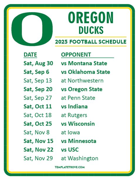 When analyzing your Oregon Ducks football schedule 2026 printable , pay close attention to the schedule’s spacing. Are there crucial rivalry games back-to-back? Are there challenging road trips interspersed with home stands? The flow of the schedule can significantly impact a team’s ability to prepare and perform. A well-timed bye week can be a blessing, allowing for rest and recovery before a critical stretch. Conversely, a tough stretch of games without a break can test a team’s depth and stamina. Understanding these nuances will help you appreciate the strategic challenges the coaching staff faces and the resilience required from the players. So, get your highlighters ready, because these key rivalry games and pivotal matchups are the ones that will define the 2026 season for the Oregon Ducks.