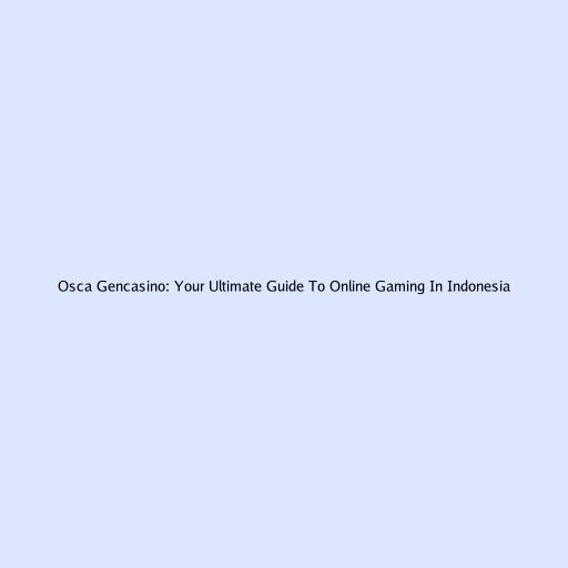 Osca Gencasino: Your Ultimate Guide To Online Gaming In Indonesia