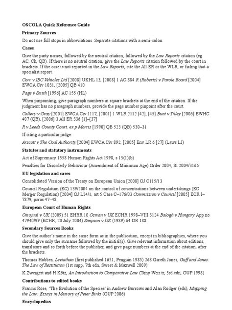 Beyond online resources, the OSCOLA latest updates also bring refined rules for citing legislation and international law. These areas are fundamental to legal research, and clarity here is paramount. When it comes to legislation, OSCOLA 4th Edition provides more detailed instructions on citing Acts of Parliament. This includes how to accurately reference commencement orders, which are crucial for understanding when specific provisions of an Act come into force. If an Act is brought into force in stages through multiple commencement orders, OSCOLA now offers a more precise method to reflect this complex reality in your citations. This level of detail ensures that your references to legislation are not just correct, but also contextually accurate. For secondary legislation, like Statutory Instruments (SIs), the updates offer clearer formatting. This helps to distinguish them from primary legislation (Acts) and ensures they are cited consistently. For example, the specific way you would reference an SI from 1998 versus one from 2023 might have subtle but important differences according to the latest guidelines. This precision is vital, as the status and effect of secondary legislation can be quite different from that of Acts. Furthermore, the latest OSCOLA updates have also paid close attention to the citation of international law. This includes treaties, conventions, and decisions from international courts and tribunals. The legal world is increasingly interconnected, and accurately citing these sources is essential for comparative law, international law, and human rights scholarship. The guidelines now offer more specific advice on how to cite international treaties, ensuring you include all the necessary information for identification, such as the treaty number, date, and relevant parties. Similarly, for decisions of international courts, such as the International Court of Justice (ICJ) or the European Court of Human Rights (ECtHR), the updates provide clearer formatting to ensure these influential rulings are referenced correctly and consistently. This standardization makes your arguments based on international legal authority more robust and easier for your readers to follow. It’s all about making sure that when you refer to a piece of legislation or an international legal instrument, your reader can find it without any ambiguity. These updates demonstrate a commitment to keeping OSCOLA practical and effective in a globalized and digitally-driven legal environment. So, whether you’re citing a local by-law or a UN treaty, make sure you’re referencing the latest edition of OSCOLA for accuracy.