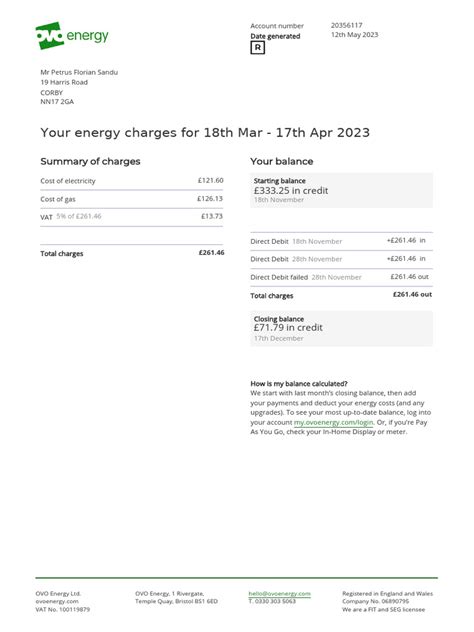 Alright, so the first thing you’ll notice on your OVO Energy utility bill is that it’s designed to give you a clear picture of your energy consumption and the costs associated with it. OVO aims for transparency, so they usually break down the charges into a few key sections. You’ll typically see details about your gas and electricity usage , the rates you’re being charged per unit (like kilowatt-hours for electricity and cubic meters or kilowatt-hours for gas), and any standing charges . Standing charges are basically a fixed daily fee that covers the costs of supplying energy to your home, regardless of how much you use. It’s crucial to understand these components because they are the building blocks of your total bill. OVO often provides graphs or charts showing your historical usage, which is a fantastic tool for spotting trends and identifying potential areas where you might be using more energy than you thought. Don’t shy away from these visual aids; they’re there to help you get a grip on your energy habits. We’ll also touch upon different types of OVO tariffs and how they might affect your bill. Whether you’re on a fixed-rate plan or a variable one, the way your usage translates into cost can differ significantly. Plus, understanding your bill empowers you to query anything you’re unsure about. If something doesn’t look right, the detailed breakdown on your OVO bill gives you the information you need to contact OVO customer service and get it sorted. It’s all about taking control and ensuring you’re being billed accurately for the energy you use. So, let’s get into the nitty-gritty of what each section actually means and why it matters for your household budget. It’s more than just a piece of paper; it’s a roadmap to understanding your home’s energy footprint.