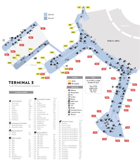 Who says waiting at the airport has to be boring? Terminal 3 at Pearson is packed with amenities and services designed to make your pre-flight experience as comfortable and enjoyable as possible. While you’re using the Pearson Airport Terminal 3 departure map to find your gate, also keep an eye out for these fantastic options. Foodies, rejoice! Terminal 3 boasts a wide array of dining choices, from quick bites at fast-food joints to sit-down restaurants offering diverse cuisines. Whether you’re craving a coffee, a full meal, or just a snack, you’ll find something to satisfy your taste buds. Major chains and local favorites are all represented. For the shoppers among us, there are plenty of retail outlets selling everything from duty-free items and fashion to travel essentials and souvenirs. It’s the perfect place to grab any last-minute gifts or treat yourself. Need to freshen up? Restrooms are conveniently located throughout the terminal, and many are equipped with changing tables. For those traveling with little ones, there are often family washrooms available. If you’re looking for a bit of peace and quiet away from the crowds, consider visiting one of the airport lounges. Many airlines offer their own lounges, and there are also independent lounges accessible to all travelers for a fee. These lounges provide comfortable seating, complimentary snacks and drinks, Wi-Fi, and sometimes even shower facilities – a real lifesaver on a long journey! The Pearson Airport Terminal 3 departure map will clearly mark the locations of these lounges, as well as major food courts and retail areas. Keep an eye out for currency exchange counters and ATMs if you need cash. Free Wi-Fi is usually available throughout the terminal, allowing you to stay connected. Don’t forget to utilize the map not just for navigation but also to discover these hidden gems that can make your waiting time fly by. Planning your departure means knowing where to refuel, shop, and relax, and the map is your key to unlocking all these conveniences.