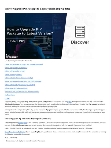 Another common issue is package not found errors. This can happen if the package is not available in the specified index URL or if there are dependency conflicts. Double-check the index URL and ensure that the package and its dependencies are available. You can also try using the --extra-index-url option to include PyPI as a fallback. If you’re still encountering issues, try upgrading pip to the latest version: