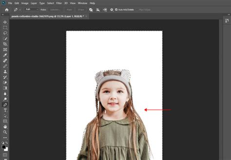 5. Refine the Selection : Sometimes, the Magic Wand might not select the entire background in one go, especially if there are variations in the white color. Hold down the Shift key and click on any remaining white areas to add them to the selection. If the selection spills over onto your subject, undo ( Ctrl+Z or Cmd+Z ) and lower the tolerance, then try again.