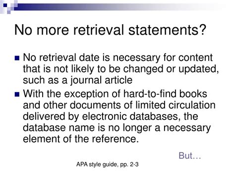 Thirdly, Understand When to Use Retrieval Dates . APA 7th edition has specific guidance on retrieval dates. Generally, you don’t need them for most sources like journal articles, books, or stable webpages. However, they become important for sources that are ephemeral or likely to change . Think of things like unarchived social media posts, specific versions of online encyclopedias (like Wikipedia, though generally discouraged for academic use), or course pages that might be updated regularly. If the content isn’t archived or dated in a way that guarantees its permanence, including a retrieval date (e.g., “Retrieved March 15, 2024, from [URL]”) can be crucial. When in doubt, consult the latest APA Publication Manual or reliable academic resources.